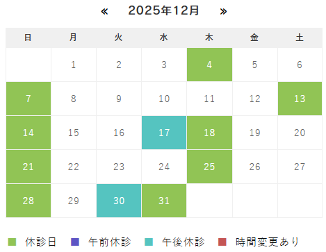12月と年末年始の休診日のお知らせ